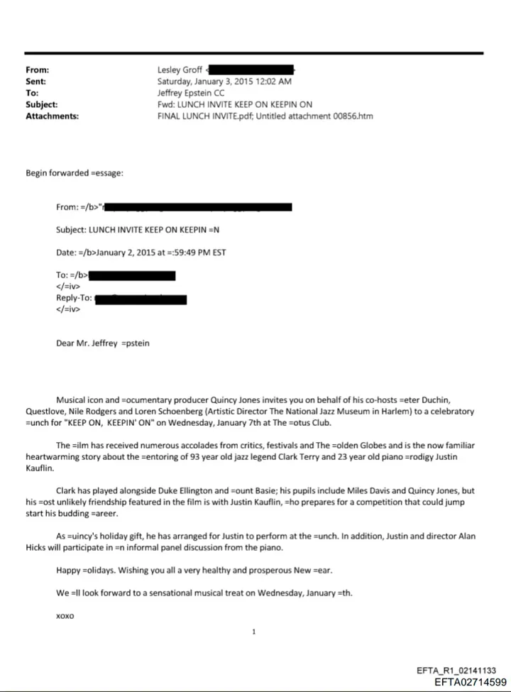 They are both insiders with ties to Epstein; Jones cordially invited Epstein to his jazz brunch, “Keep On, Keepin’ On” in 2015.